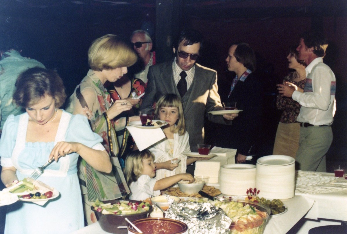 File2421 ← Previous Next → Terry, Cheryl and Steve and their two daughters, Carlton in the background, Gary, and Dave. Delicious spread.